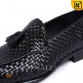 Men's Handmade Black Woven Leather Tassel Loafers CW708117