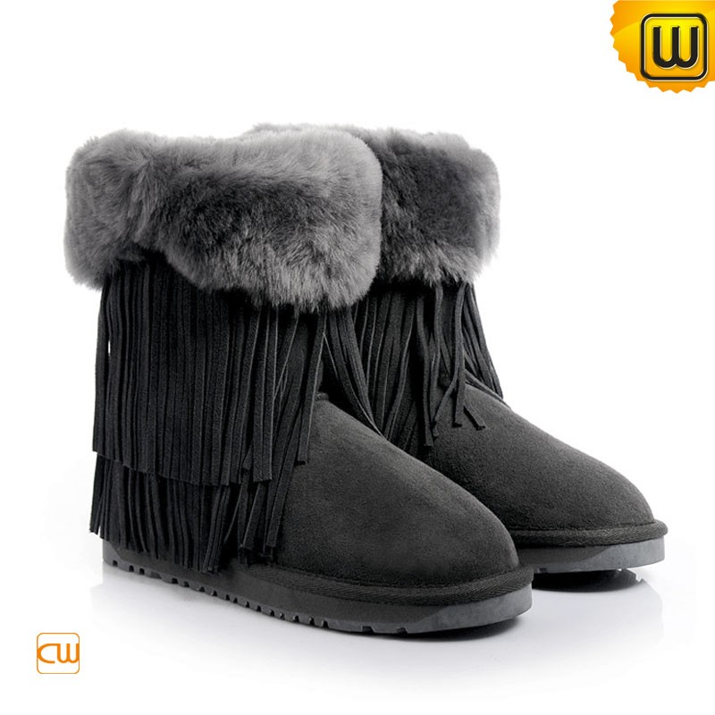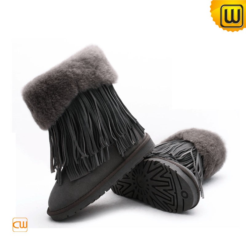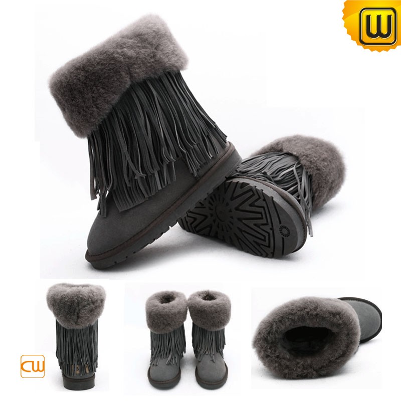Womens Warm Winter Shearling Fringe Boots Black CW314426