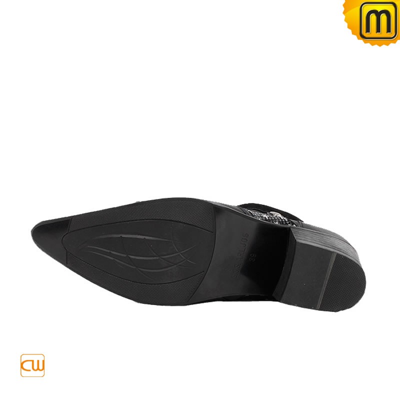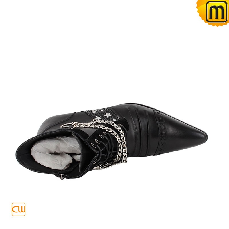 Men's Sliver Hardware Chain Designer Leather Boots Shoes Black CW769135