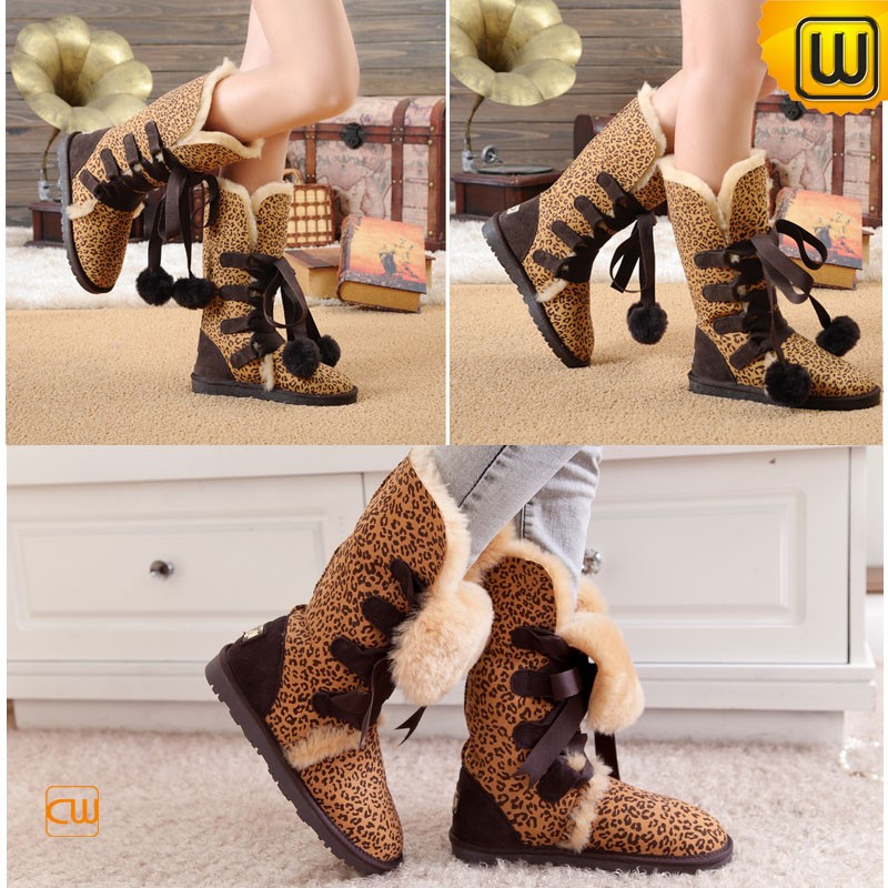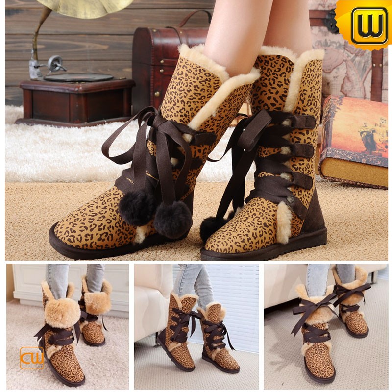 Ladies Warm Leopard Printed Shearling Lined Snow Boots CW314410